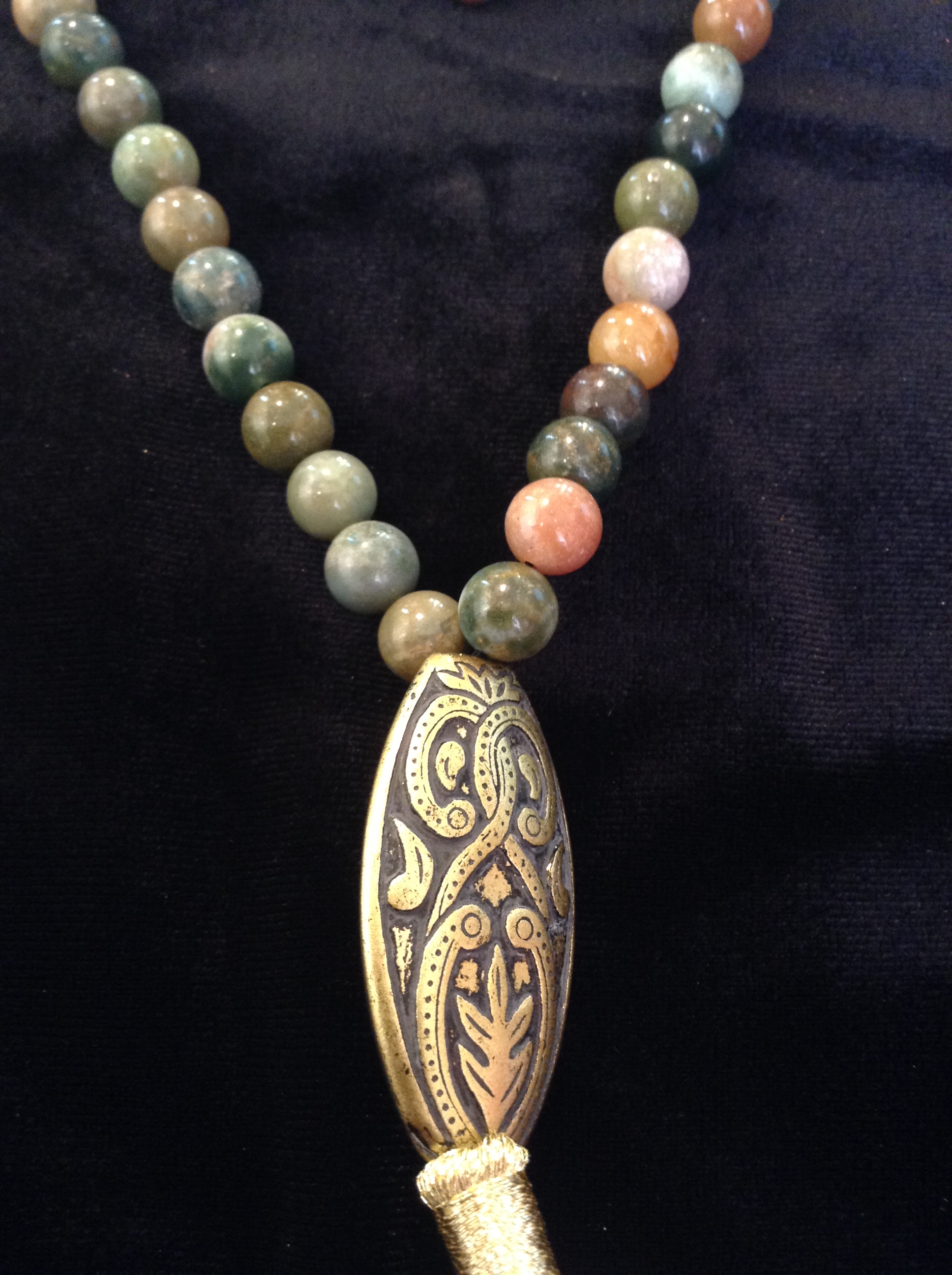Размер: Общая длинна с кистью 56 см, бусина d=0,8 см.