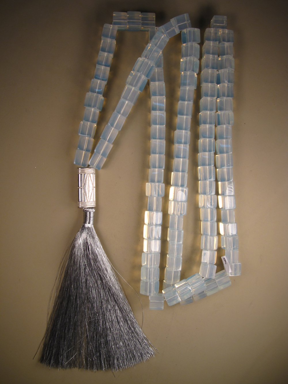 Состав: Четки из крупных бусин необычной формы в виде квадратов. Выполнены из натурального лунного камня, четки оформлены серебристой кистью.