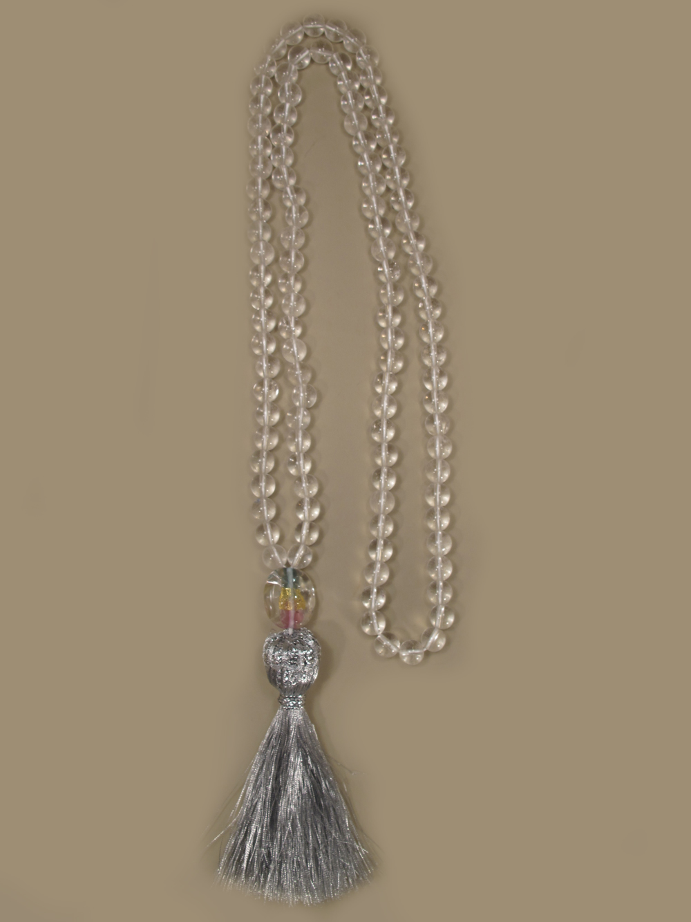 Состав: Четки из разноокрашенного бразильского горного хрусталя, бусины среднего размера, четки оформлены золотистой кистью.