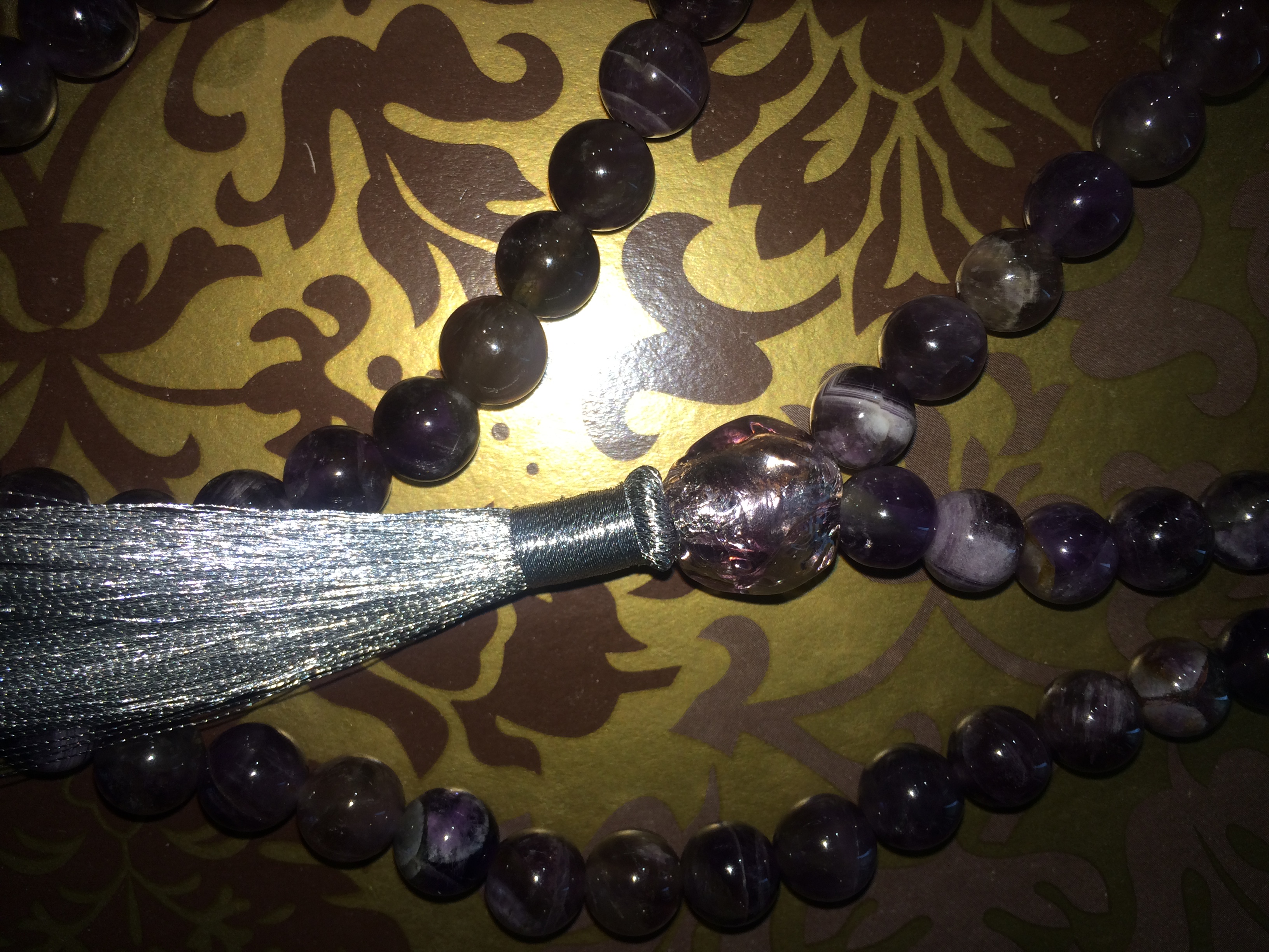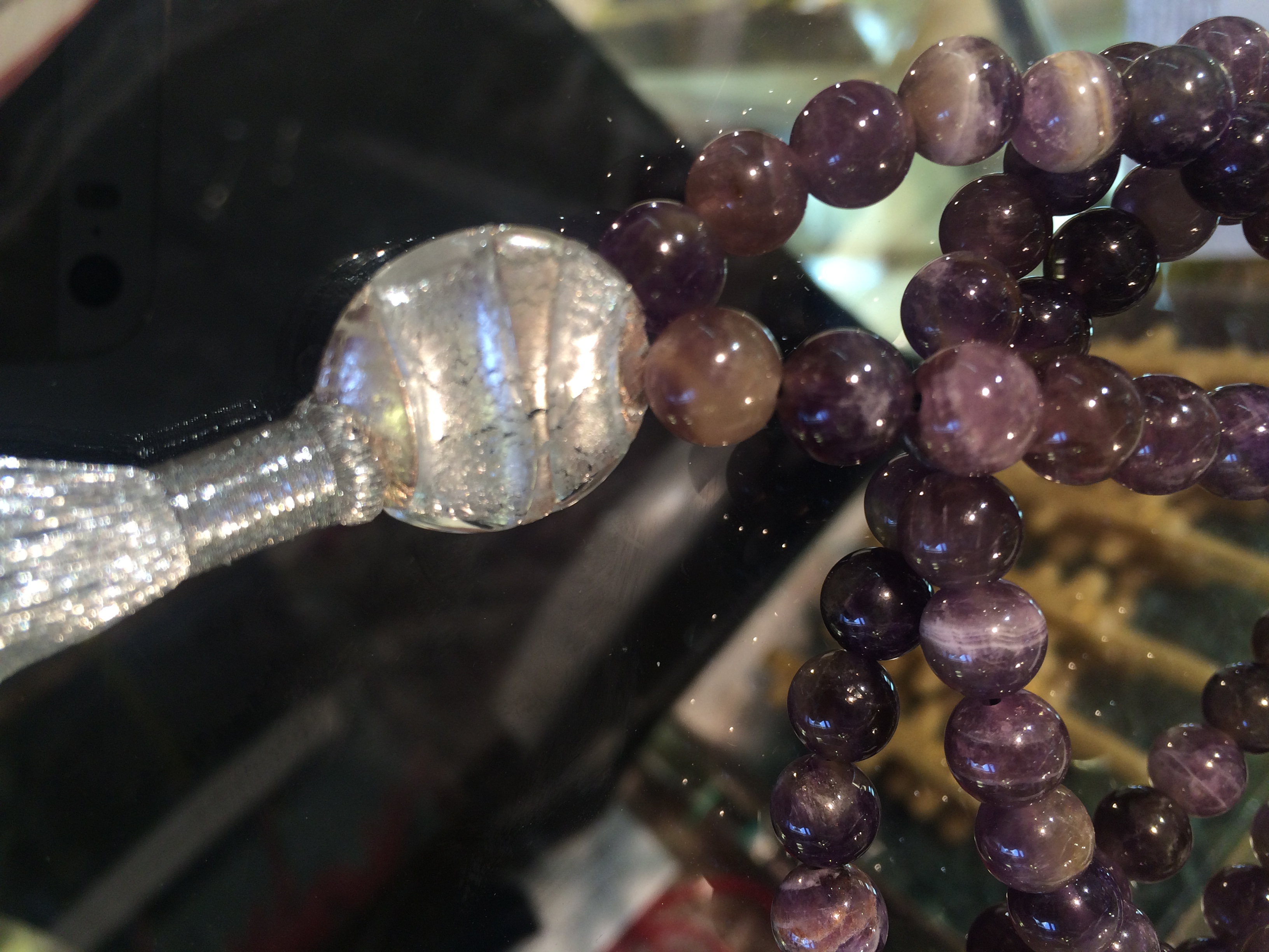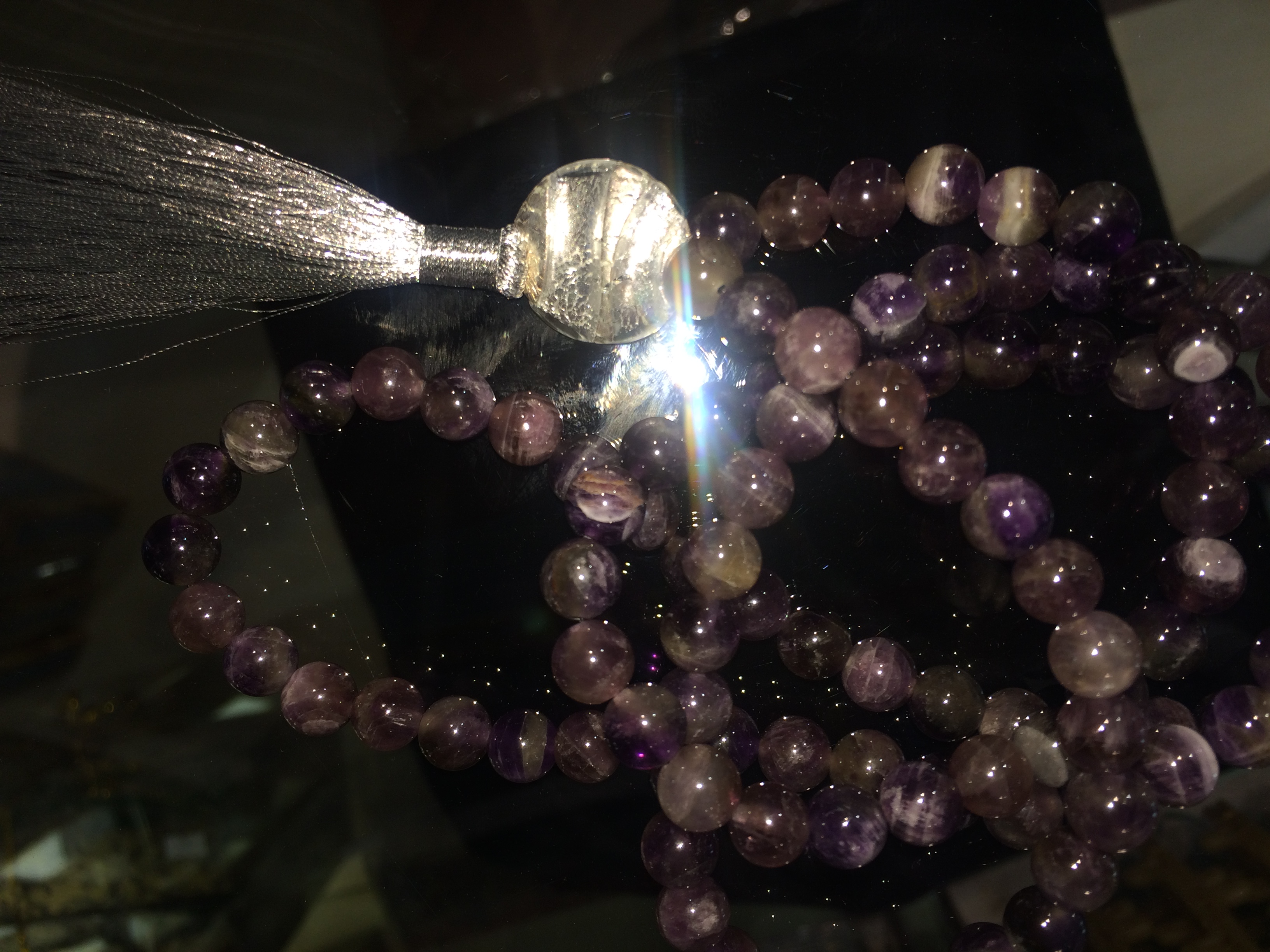 Состав: Четки из натурального камня аметист, бусины среднего размера. Оформлены кистью серебристого цвета.