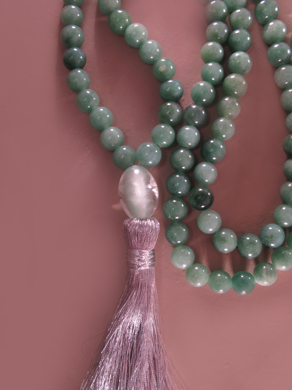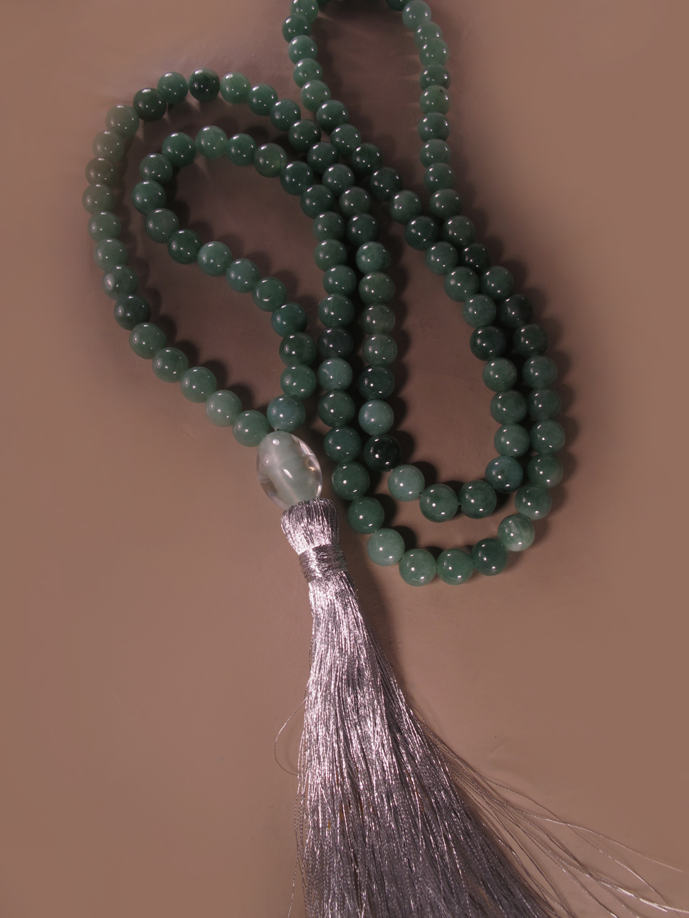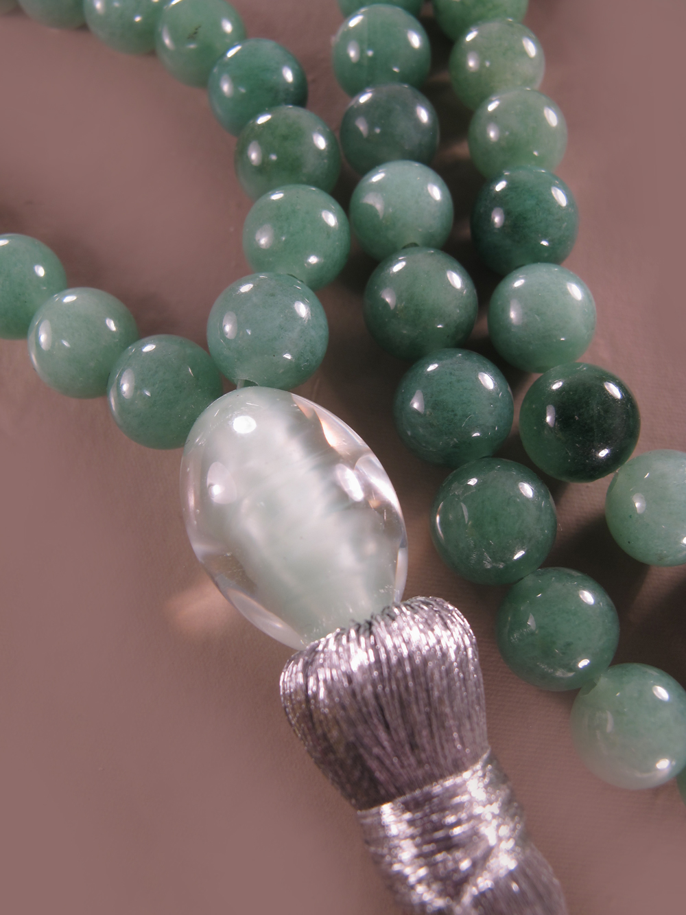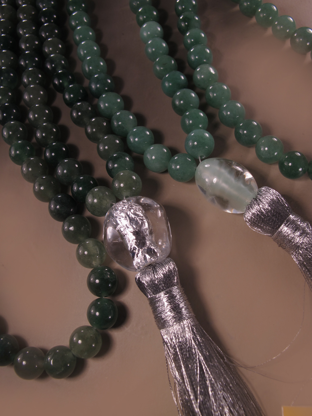 Состав: Четки из натурального светлого нефрита. Оформлены серебристой кистью из люрекса.
